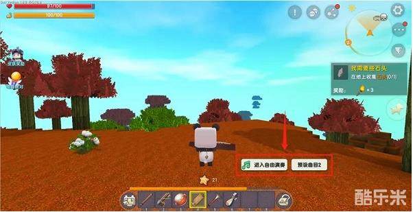 2、所需要的材料并不算多,冒险家只需要在冒险模式里进行收集基本都可以拿到哟!当你手里拿到乐器之后,在物品栏右上方会出现两个按钮(下图红框处)!