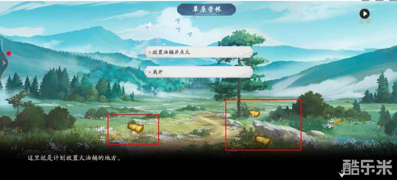 3、火烧营地:到战场营地拾取油,再去草原营地点火。