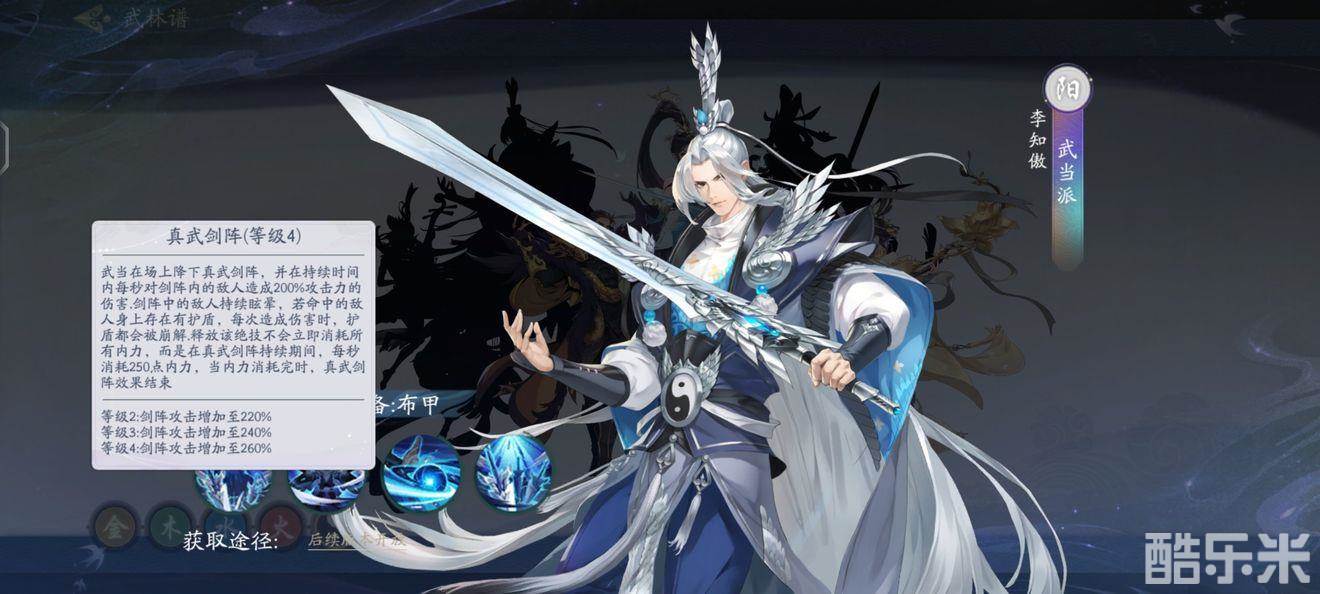 条件:释放技能时 每秒消耗250内力 内力消耗完时 剑阵结束