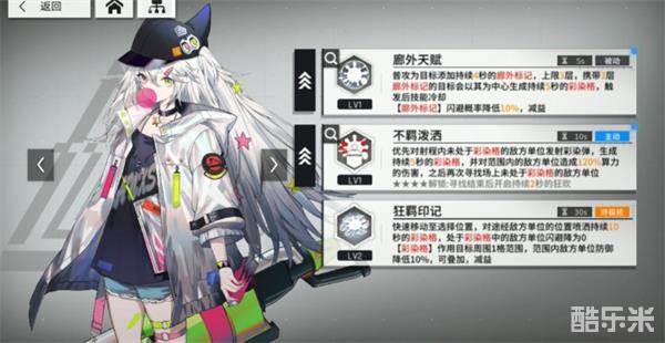 评价:开服三星里唯一一个特种,就表明她的作用不一般,普攻可以减闪避减防,小技能主动减防并且增加自身攻速,大招群体减防减闪避,输出的话只有平a有伤害,小技能倍率极低还不如多a两下,狂欢只有两秒,大招没伤害,都表明她是个纯辅助,但是前期抽到她练起来你会发现,她伤害是不亚于二星射手的(虽然我也不知道她伤害怎么来的),而且辅助能力很强,减防这个属性无论放哪个游戏都是特别高贵的属性,更何况这姐们能极限减单体30%防还是少见的群体减防,不说强就算弱也不可能弱到哪儿去。