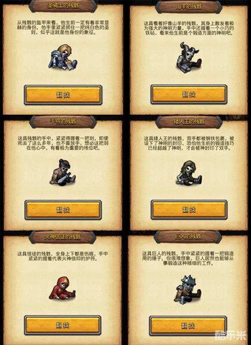 你将会遇到圣骑士的残骸,继承他的纯白圣剑;在干将的残骸中找到莫邪;还有矮人王的王权刻印、火神的雕像、山羊的炙热风箱......属于诸神们的武器,等你一一收集。