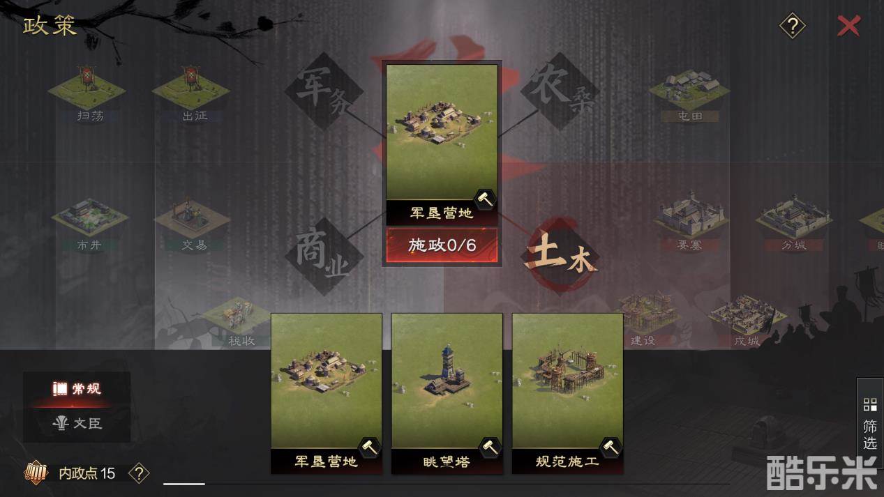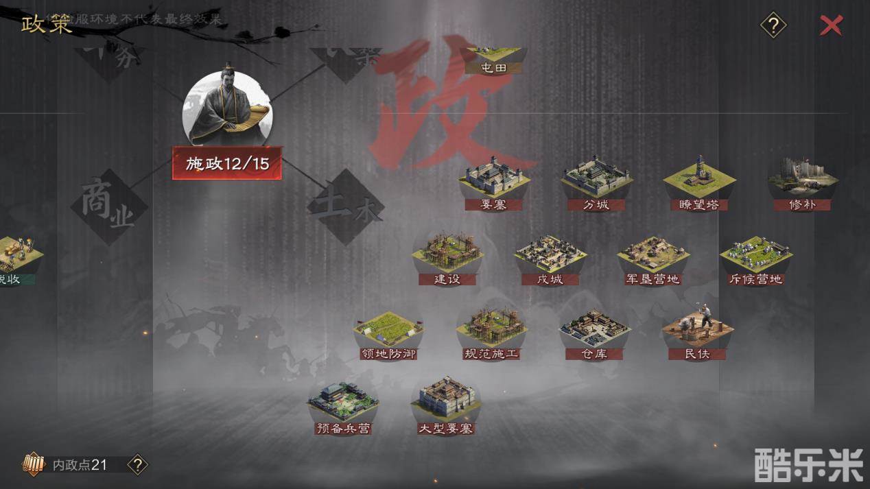 同时相比先行体验服,我们也降低了部分常规政策解锁所需的名望,如军垦营地、瞭望塔、规范施工等,主公可在更加适当的时机实施这部分常规政策。