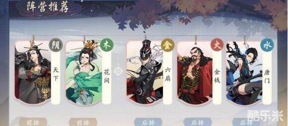 后排:六扇(金) 金钱(火) 唐门(水)。