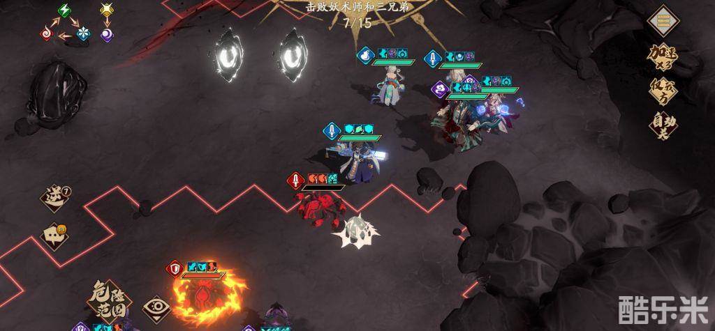 无邪开大打蜈蚣,顺便给黎幽做跳板晕蜈蚣,剩下的人上回合运气好应该清光了,运气不好也只剩一只小蜘蛛,不管剩不剩都不要管,冲左边汇合
