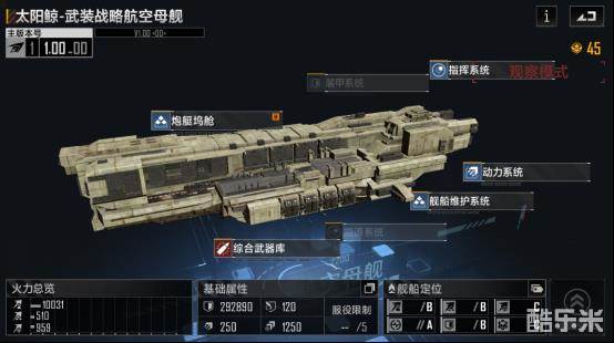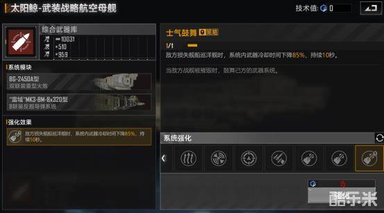 强化上策略不太建议点出,其效果只有敌方损失巡洋舰时才会触发武器冷却时间下降,触发条件苛刻而且航母并不靠自身武器输出。优先点舰载机的冷却、伤害,之后再舰船维护系统里继续强化舰载机能力,多余点数投入到速度上,要知道太阳鲸是全游戏最慢的舰船。