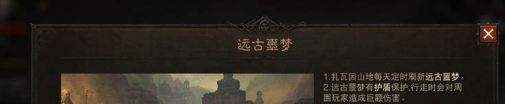 远古噩梦在扎瓦因山地里面,大家需要等级达到满级以后才可以开始挑战,这个boss属于世界boss的一种,小伙伴们传送到这张地图里面可以看到,左侧有一个时间提示。等达到对应时间之后就会在这个地图里面出现。