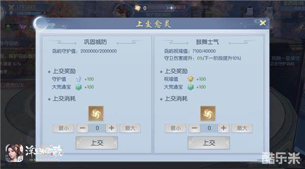 大荒深处的岛屿,自古以来就有圣兽的守护,当岛屿守护值归零时,岛屿将会进入备战期,结束后进入开战期后,各个阵营将争夺岛屿的归属权。阁下进入岛屿后,击败岛屿守卫或采集岛屿物资都可以扣除岛屿守护值,每日扣除的守护值数量有上限。而守护方完成每日悬赏任务可获得愈灵,愈灵上交给己方岛屿可以回复岛屿的守护值,也同样可以提升岛屿的祝福值增加岛屿守卫对入侵者的伤害。