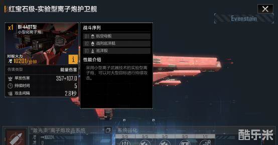 红宝石级-实验型离子炮护卫舰,它是它们三兄弟中输出最为爆炸的,主武器换成了离子炮攻击系统,副武器也换成了防空离子炮,我们一起来看一下:《无尽的拉格朗日》红宝石级实验型离子炮护卫舰强度一览