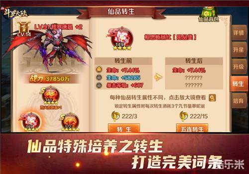 除了以上常规培养方式,《新斗罗大陆》仙品还有一种特殊的转生玩法。经过转生的仙品可以突破自身属性极限,还可以附加新的属性词条,帮助玩家打造完美词条的仙品。