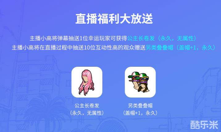 直播过程中也会送出相应的奖励,小高将会通过弹幕抽取一位幸运玩家获得公主长卷发,还会选出10位互动性高的观众送出另类叠叠帽,永久盖帽+1。