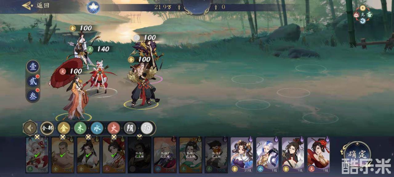 阵容选择上当以契合度为主,有的侠客相互配合起来起到的作用远比单提升战斗力要强悍,尽量保持双C一辅双前排的节奏,可以灵活穿插刺客切后排,但要保证队伍中有能压低敌方阵容血线和收割的存在,除此之外,其它的阵容可以优先以同系为主,比如五金、五木等阵容,在侠客品质较低的情况下能很好地补足战力水平差距。