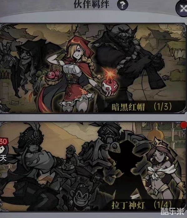 其次,比较被大家关注的属性加成还有暗黑红帽,里面对应的三个人物分别是布兰妮,疯外婆以及狼人。玩家可通过集齐以上的三个人物,然后在暗黑红帽的羁绊玩法内领取对应的羁绊伙伴加成。