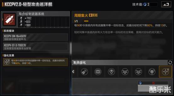 此类策略效果是每隔一段时间令副炮或者所有武器集中单一攻击目标,武器冷却时间下降,持续XX秒。通常此策略要看舰船内其他武器的伤害,如果数值不高,或者本身就是防空类的武器,那么优先级一般,但是如果为了主武器的冷却时间而点,也是值得的。