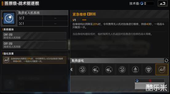 此类策略的效果为自身结构比例降低到危险值时,令无人机进行维修,通常一场战斗只会触发一次,但是对于舰船的续航和生存能力非常有保障,此类策略优先级高。
