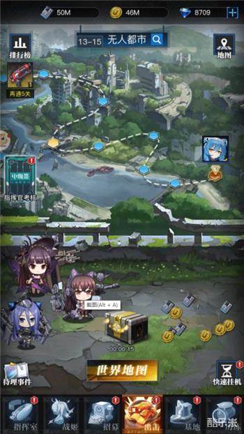 9个地图板块,分普通、困难、噩梦。推完全部普通的关卡才能去困难。推图、练级,玩法功能预告都在这块