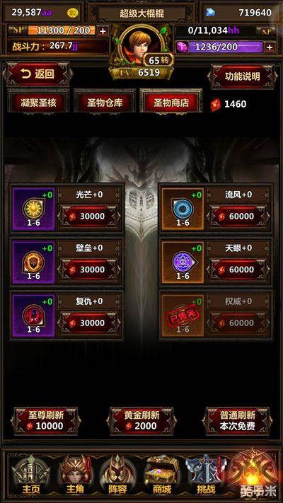 ·圣物商店在每天4点、12点、20点获得一次免费的普通刷新次数,免费次数不能累积。每次刷新,获得6个随机的圣物配方。消耗圣核即可生成一个按配方指定位置、指定类型、指定品质的圣物,但它的星级和属性类型仍然会在生成时随机得到。