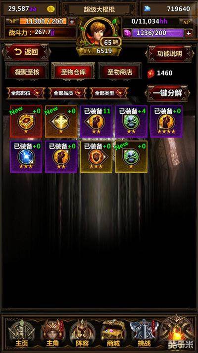 ·圣物仓库中能够查看已有圣物,还能够查看它们的属性、升级及分解它们。