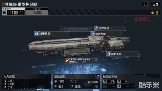 澄海级重型护卫舰,武器的伤害非常不错,但由于冷却时间较长,略逊与红宝石和刺水母。