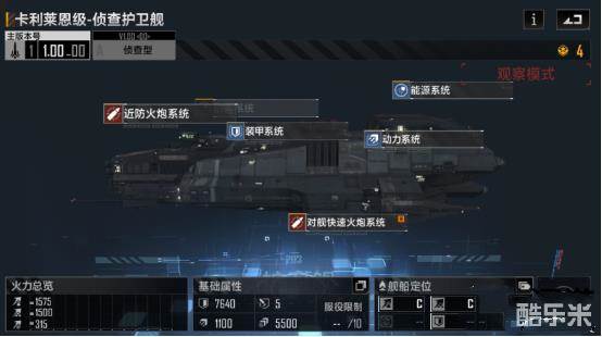 卡利莱恩级侦查护卫舰,游戏里全部C级的评价,笔者完全想不到他存在的意义,伤害伤害不行,做炮灰,人口需求还比FG300高,也比FG300贵,侦查探路也用不上,免费的FG300侦查型不香么?
