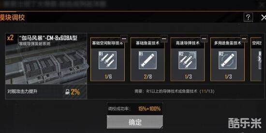 比如常规的火炮类武器都可以用火炮技术来进行调校,导弹需要用导弹技术进行调校等等。