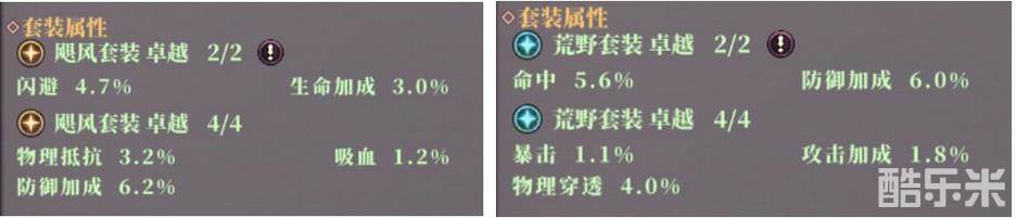 分析:从套装属性来看,飓风偏向于防御,荒野偏向于进攻,游侠主进攻,所以大部分情况下选择荒野套装。