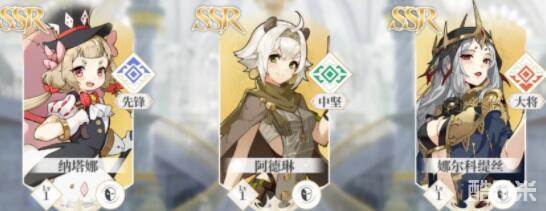 先锋-纳塔娜、中坚-阿德琳、大将-娜尔科缇丝