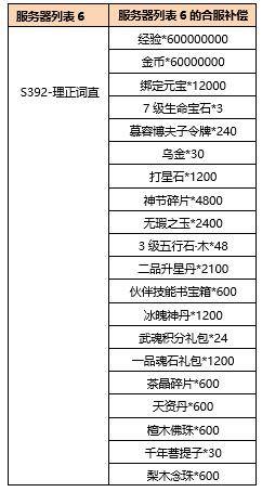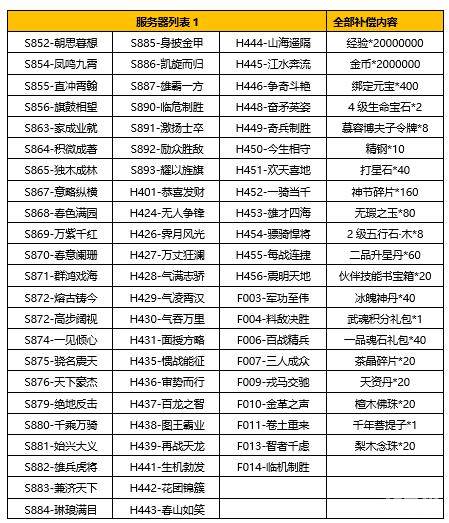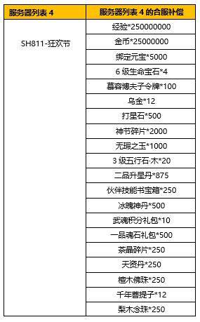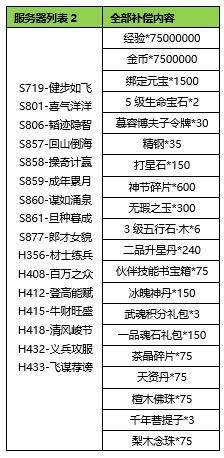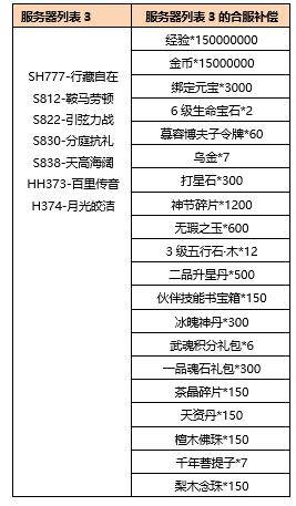 补偿范围:以下区服合服前建立账号的角色可以领取本次合服补偿。