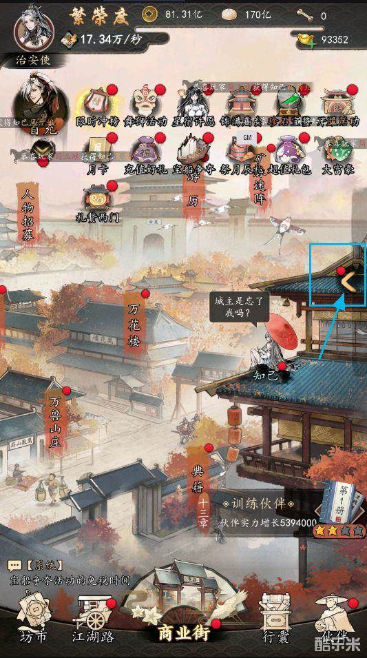 ①在《踏马江湖》(测试服)界面右方点击【箭头】