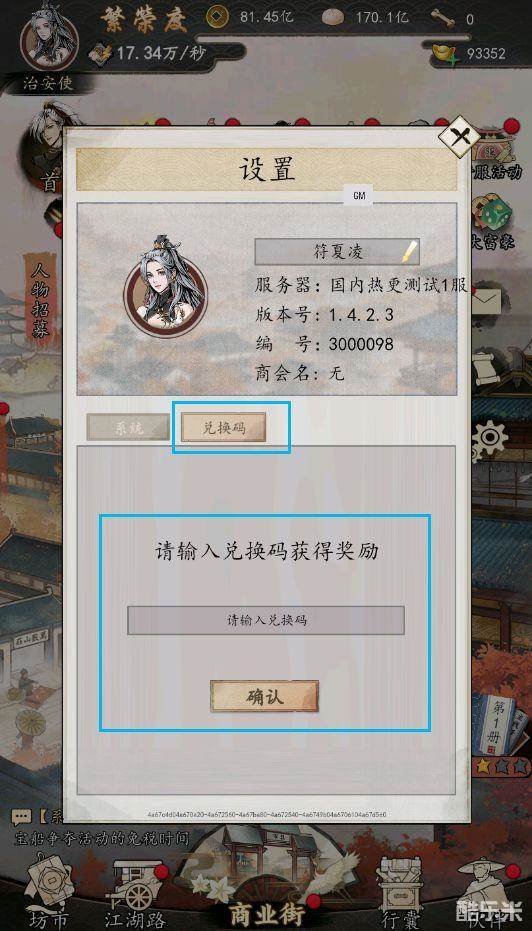 (步骤3:出现设置界面,并在【兑换码】栏内填写福利礼包码)