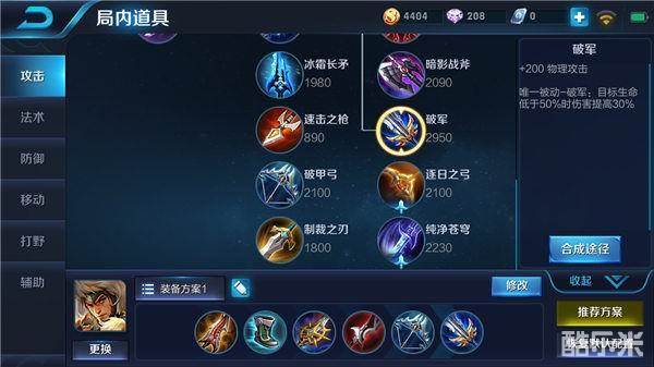 解析:破甲弓增加了成吉思汗输出的有效性,使得成吉思汗对于敌方坦克有一定克制性,打出更高的伤害,破军则增加成吉思汗大量的输出能力,以及残血收割能力。