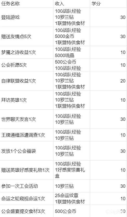 PS:学分每满250可以领取一张英雄征募券,每周学分积累到一定程度也可以领取奖励。