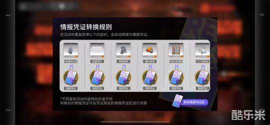 在复刻活动中,之前活动已经获取过的家具可以被转换为情报凭证,用以在情报凭证区兑换合成玉以及晋升素材。情报凭证区内的商品大多都是较为高级的晋升素材,兑换非常划算。每一次复刻关卡开启后都会刷新情报凭证区内的合成玉,请各位博士们注意兑换噢。