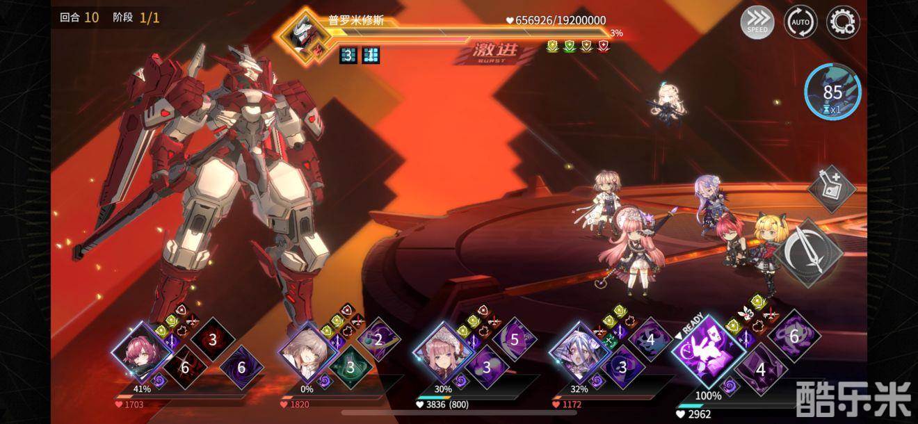40-46层开始上的佩特拉(SR暗盾),第一轮留下最后一个小怪,然后压血线,然后第二轮一波带走BOSS,一波带不走,打一轮带减伤带盾的技能+普攻输出,然后喝药看时机,清小怪或者再打一轮BOSS。(看准BOSS身上BUFF活用暗高达)