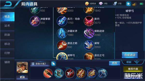 破甲弓:后期敌方坦克英雄通常都拥有较高的物理防御,破甲弓可以提供极高的物理穿透加成,有效提升成吉思汗的后期伤害。