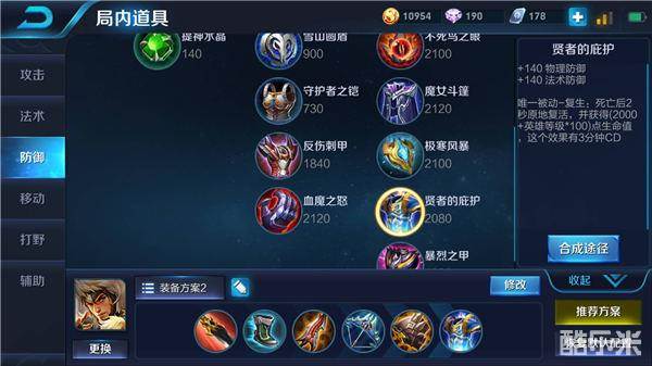 不祥征兆:替换泣血之刃,因为逆风局时,很容易被压制在高地防守,可以通过魔法泉水快速获取补给,泣血之刃这样的回复装备收益很低,因此选择出一件防御装备,需要注意的是,如果是敌方法师经济优势较大,这里的不祥征兆可以替换成魔女斗篷。