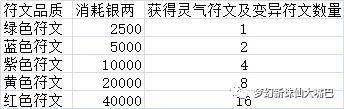 3、选择灵气符文对符文进行升级时,分别消耗灵气符文数量为