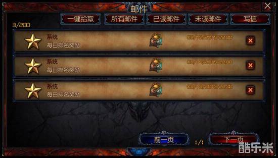 邮件:展开右侧的菜单,点击打开“邮件“,系统奖励会通过邮件发放,背包满后获得的物品也会暂时通过邮件来保存。