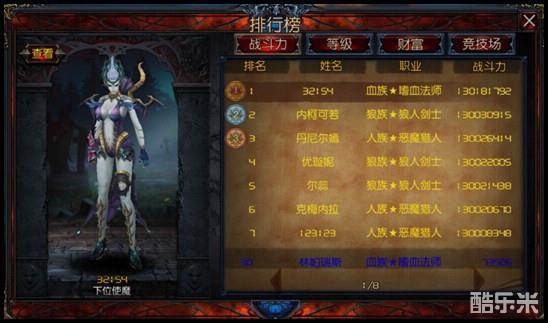 排行榜分为战斗力、等级、财富和竞技场四类,看看你所处的位置吧。