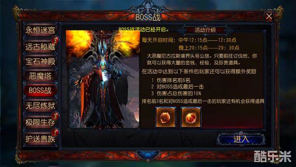 排名前3名和对BOSS造成最后一击的玩家还有机会获得橙色材料