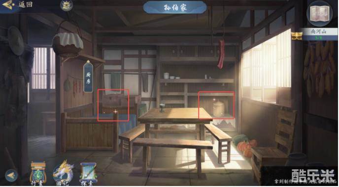 2、前往南河村救人。先去孙伯家,拿防火装备、木桶河被子等,如图所示。