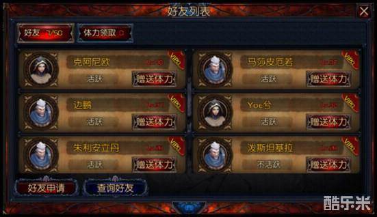 点击游戏内的“角色”可以申请好友,或者通过“查询”也可以进行申请。好友间可以互赠体力。