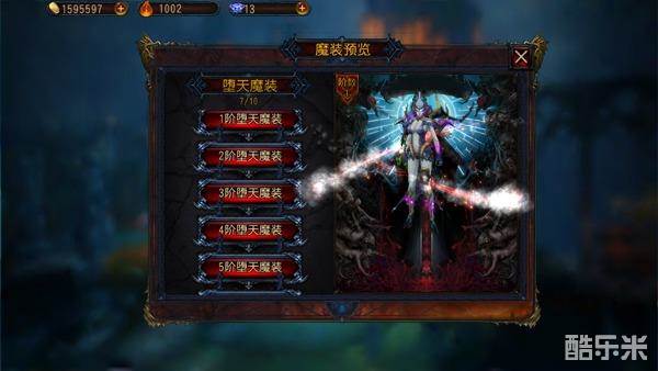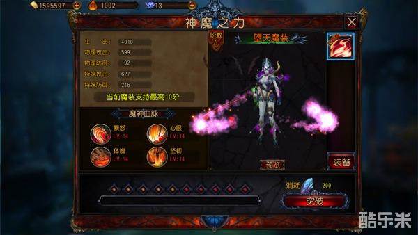 魔装最高为阶段10 每级提升可增加大量属性和战斗力.