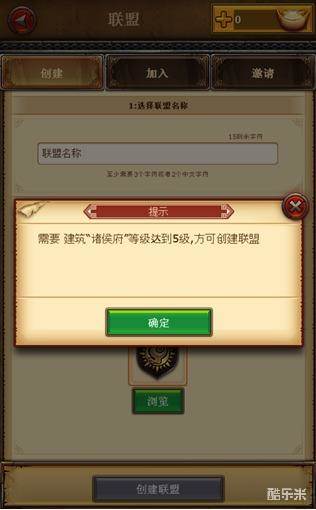 游戏中有联盟系统,联盟的加入比较容易,在进入游戏的时候即可选择联盟加入。而创建则需要诸侯府等级达到5级才能进行创建。
