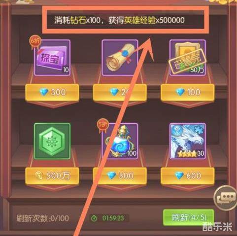2、进入商店界面后,找到【英雄经验】物品点击进入。如下图所示