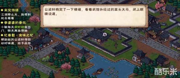 1、姑苏(18,20)和公梁轩对话,需要帮助他重温童年记忆中的三件往事。第一件食味之忆,给予公梁轩桂花糕即可