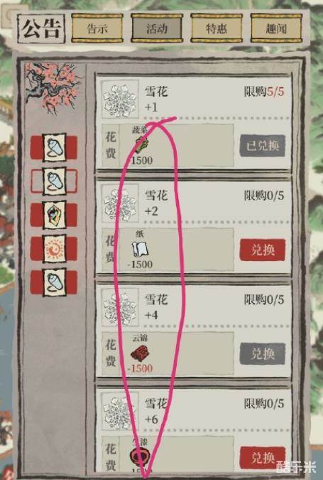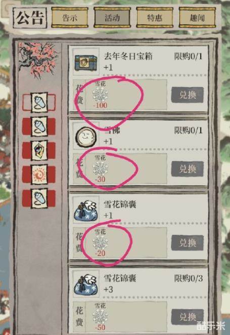 2、活动期间可兑换雪花的资源会每日变化。如图所示,今天不换完,明天就变了,就相当于少换一部分雪花