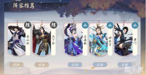 五毒教和唐门可以有个不错的叠毒伤害,可以一直打伤害而且范围还是比较的广的,神水宫可以帮助大家提升持续伤害,再加上金山派、天下会放在前面,这样我们就可以有不错的叠毒时间;