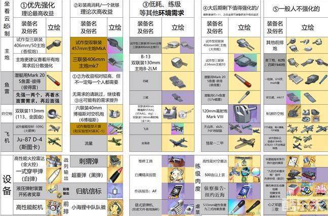 本表依然为全环境详情推荐表,大家需要选择自己需要提升的环境/装备,跳过自己不需要提升的环境/装备。