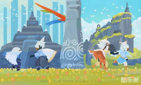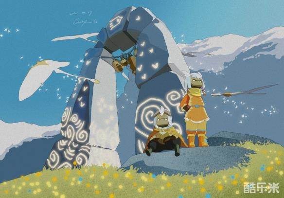 的画作中,他们来到浮岛山顶,静静聆听风铃叮当作响。遥鲲与飞鸟时而环绕身旁,映入眼帘的风景因相伴更加美好。旅人@你算哪只小猫咪呀哼