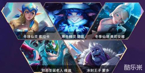 2、冰雪节系列:冬境仙灵-索拉卡、寒冬精灵-璐璐、冬季仙境-奥莉安娜、邪恶圣诞老人-维迦、冰封王子-蒙多、持胡萝卜的雪人-易、圣诞老人-布隆